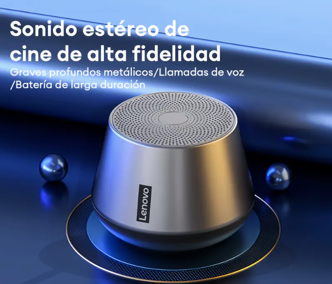 Bocina portatil LENOVO Thinkplus K3PRO HiFi co carga USB-C, diseño ligero y sonido estereo de alta calidad para uso al aire libre, bocina ideal para oficina, viajes o casa. Tiene acabado metalico y diseño tecnologico.